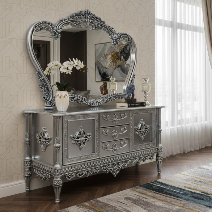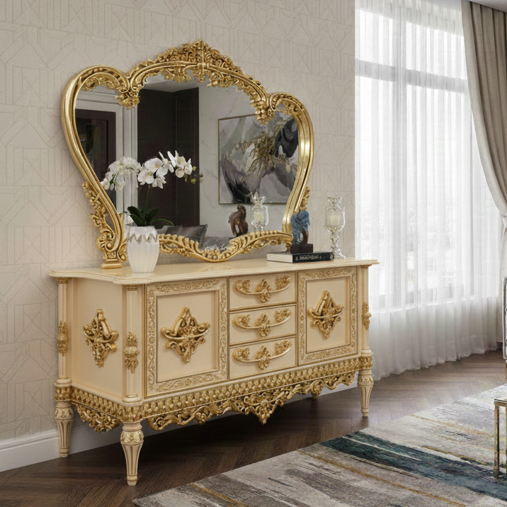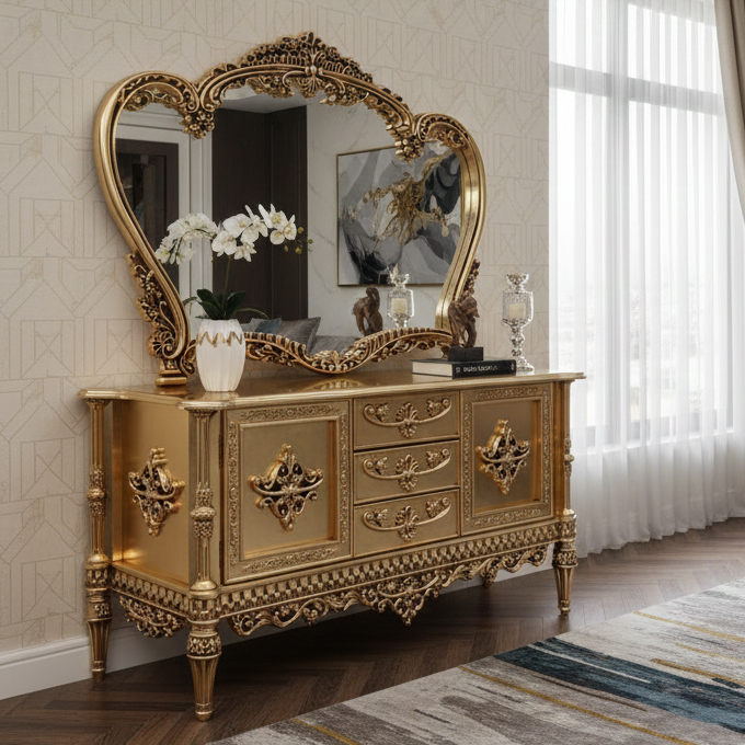 در ساخت آینه کنسول سلطنتی مدل آرتین، از بهترین متریال ممکن استفاده شده است تا هم زیبایی بصری حفظ شود و هم دوام محصول برای سالهای طولانی تضمین گردد: