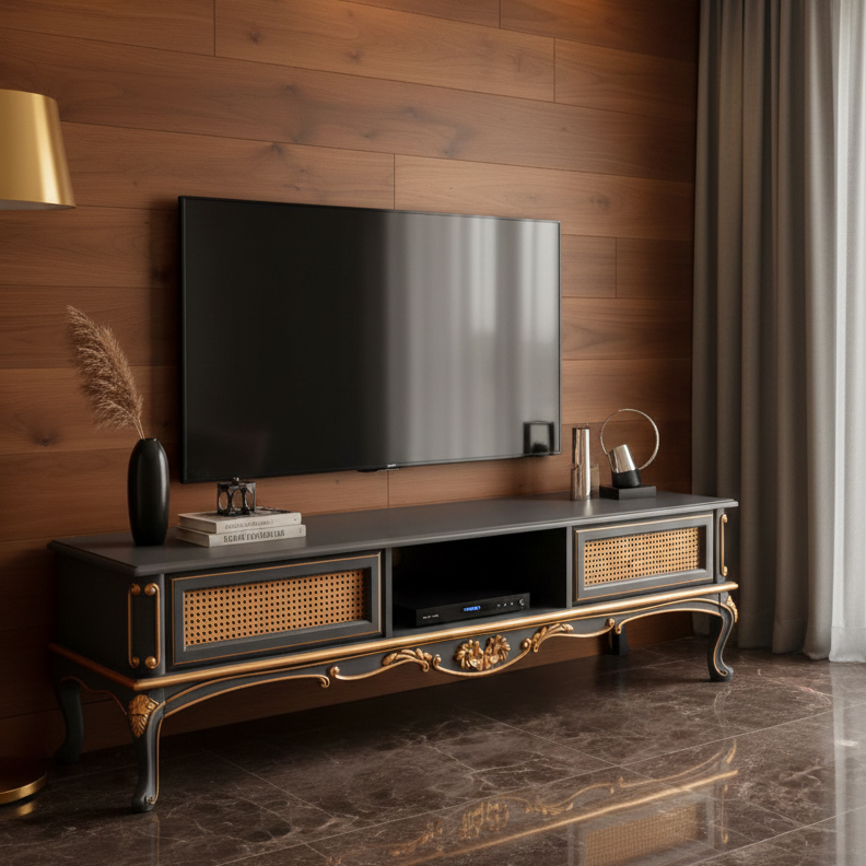 میز تلویزیون راشل تجسمی کامل از هنر کلاسیک و مدرن است. هر قطعه از این میز، از طراحی تا اجرای نهایی، در کارگاههای اختصاصی ایران چوب انجام شده و تماماً بومیسازی شده است. این طراحیها، حاصل سالها تجربه و مهارت طراحان و منبتکاران ماست که با دقت فراوان، یک اثر هنری را خلق کردهاند که فراتر از یک وسیله کاربردی است.
