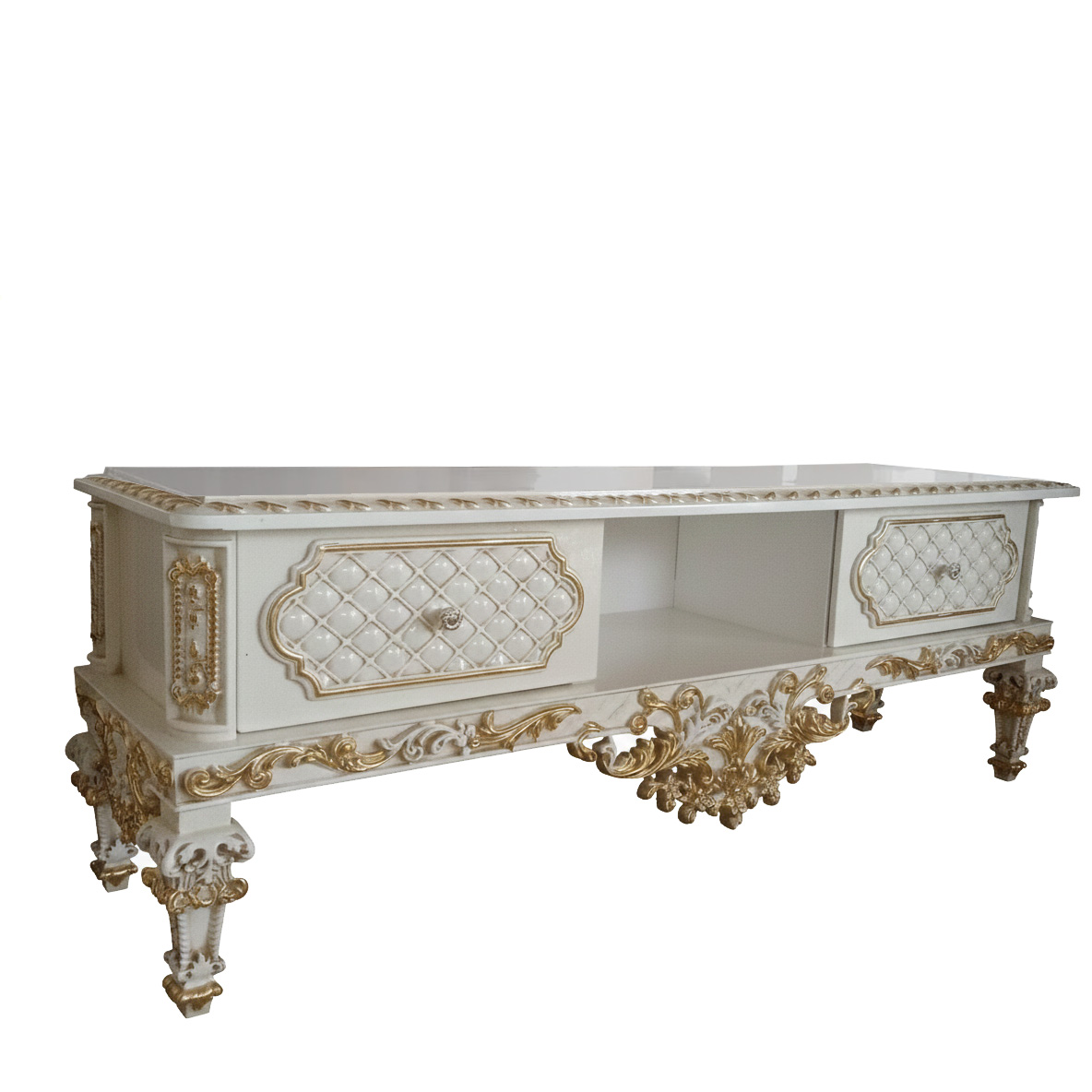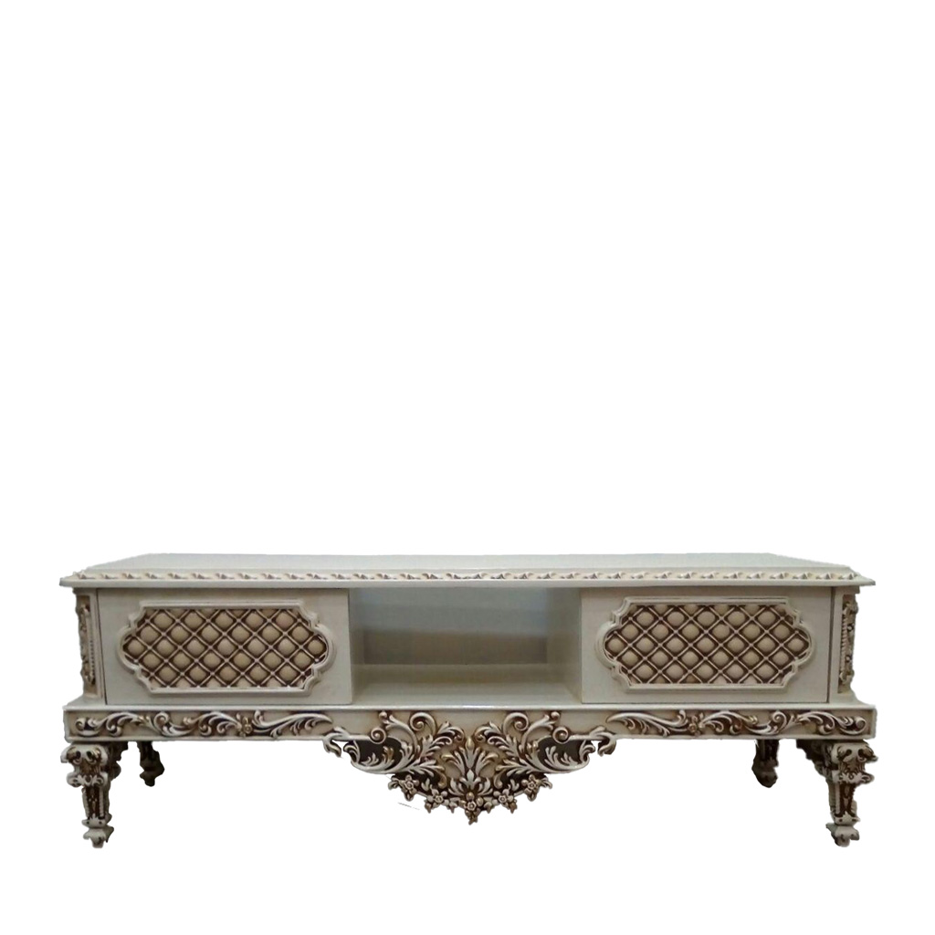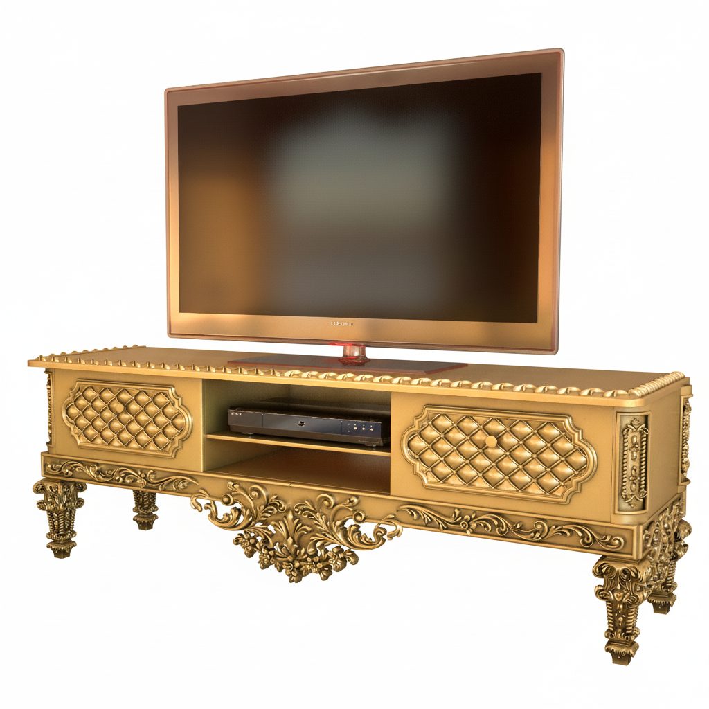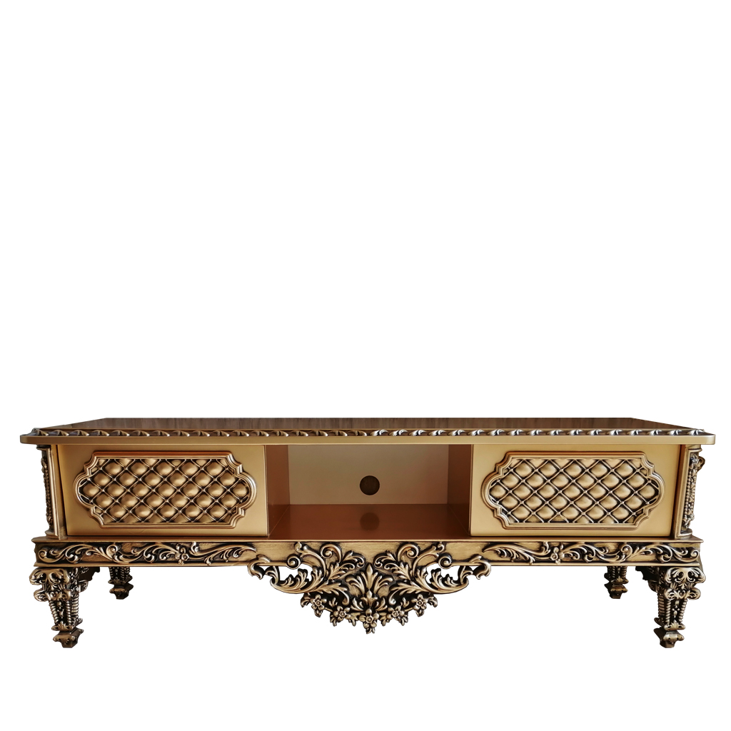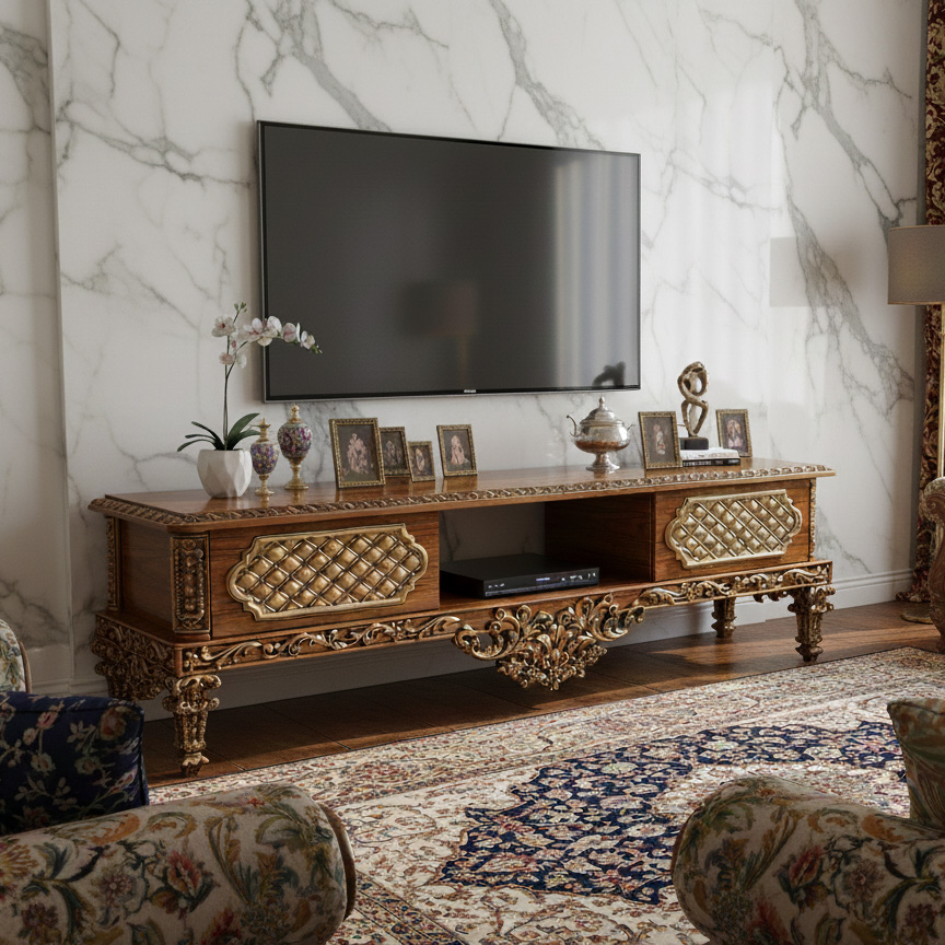 ✨ معرفی میز تلویزیون سلطنتی آنام: تلفیق هنر منبت و چوب راش